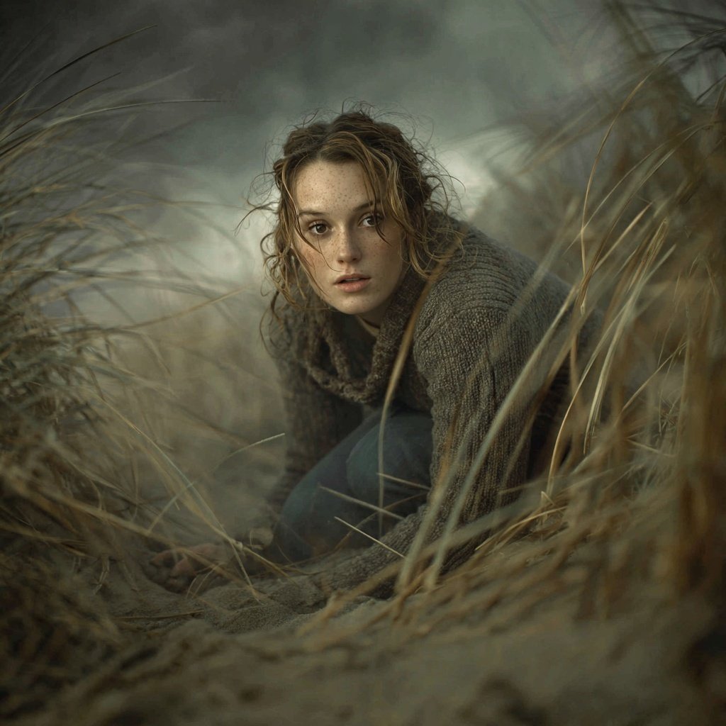Ze zet het op een rennen. Haar voeten zakken weg in het zompige zand, elke stap kost kracht als ze het duin opklimt. Haar longen branden. Regenwater druipt van het gras, klam en koud tegen haar enkels. De sleutels rinkelen zacht in haar vuist.