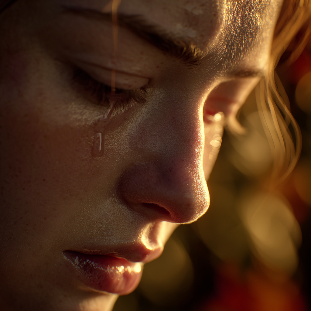 De tranen die over haar wangen rollen zijn niet langer enkel van pijn, maar van diep geluk.